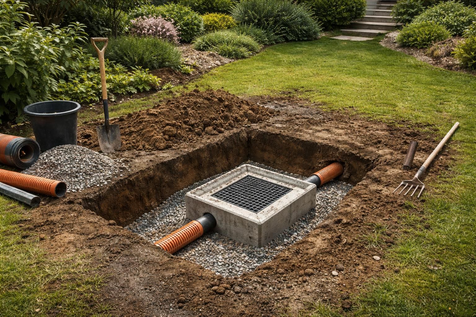 - Installation d’un lit de graviers : Disposez une couche de gravier au fond pour favoriser l’infiltration.