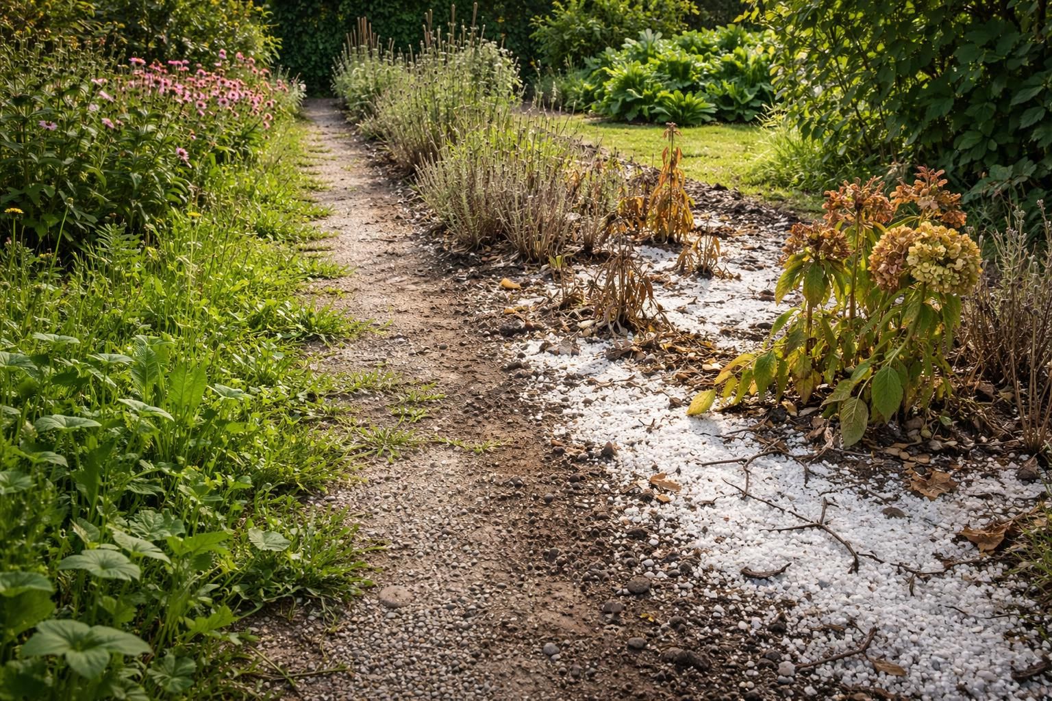 Bien que certaines personnes utilisent le gros sel dans des zones non cultivées, comme les allées ou les terrasses, cette approche présente toujours des défis environnementaux. Le ruissellement peut en effet causer des dommages collatéraux, atteignant des zones cultivées et contaminant d’autres plantes.