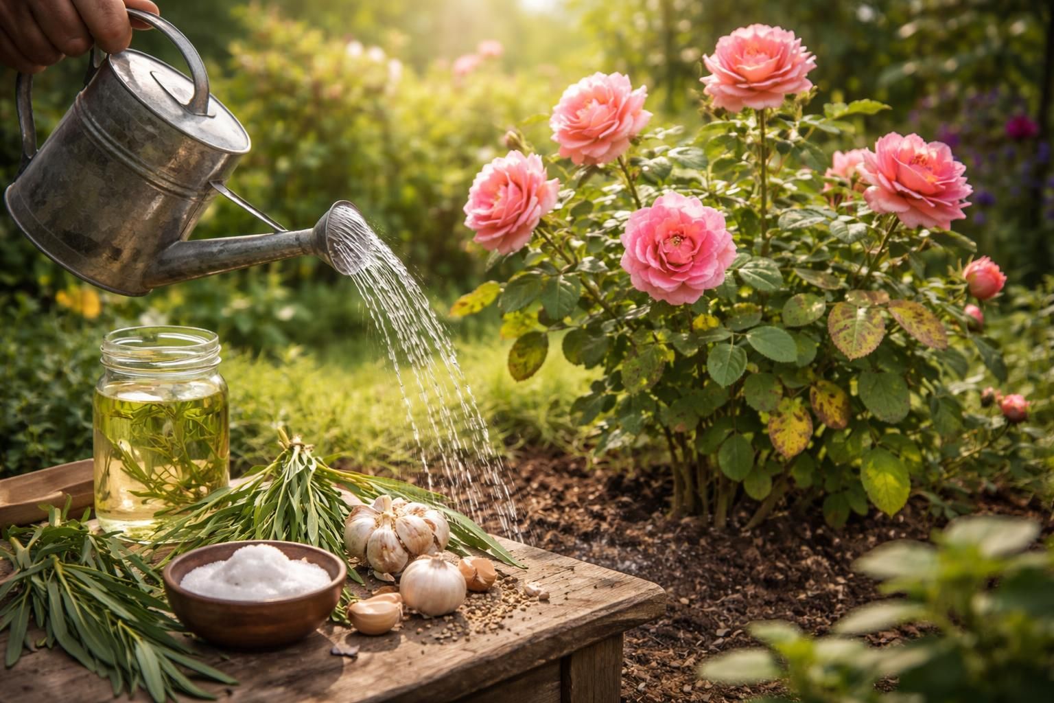 - Infusion de prêle : Utilisée comme antifongique naturel, elle renforce les défenses des rosiers grâce à sa haute teneur en silice.