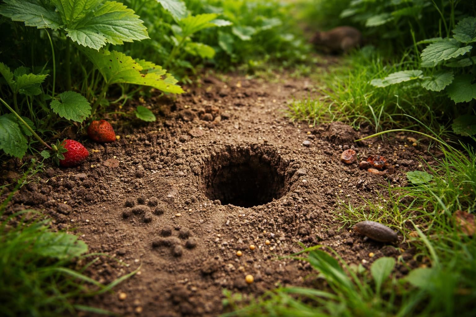 - Un trou de 5 cm sans monticule est généralement signe d’un rat ou d’un mulot, nécessitant une action rapide.